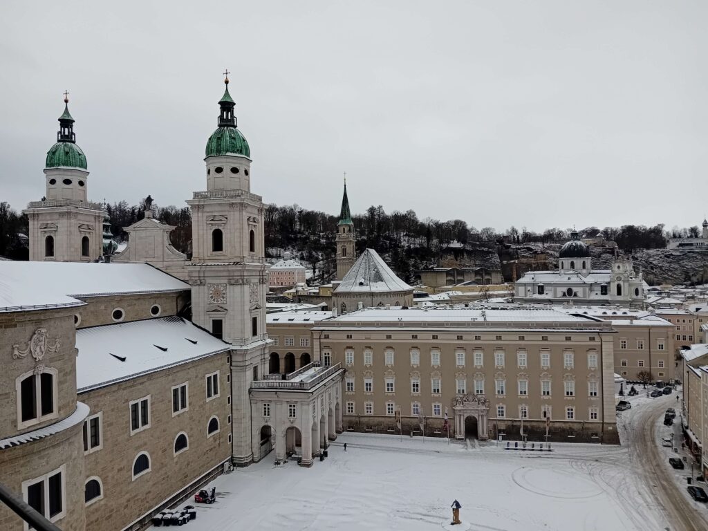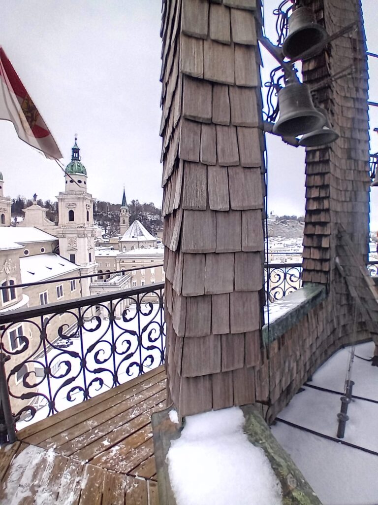 Am 08. Jänner 2025 besuchte die 5MK gemeinsam mit Frau Prof. Greisinger und Frau Prof. Dittmer das Glockenspiel in Salzburg. Nach einem kurzen Einblick in die Residenz, die Stuckaturen und den Speisesaals des damaligen Erzbischofs, erklommen wir die engen Stufen des Turms. Dort bot sich uns die Möglichkeit, die Glocken sowie die dahinterstehende Mechanik aus nächster Nähe zu betrachten und spannende geschichtliche Informationen über die damalige Zeit zu erhalten. Das besondere Highlight unseres Besuchs war ein Sonderspiel, das extra für uns außerhalb der regulären Spielzeiten aufgeführt wurde. Das Lied Stille Nacht, heilige Nacht konnten wir dabei aus unmittelbarer Nähe hören. Auf rund 35 Meter Höhe konnten wir abschließend noch einen 360 Grad Ausblick über ganz Salzburg genießen.