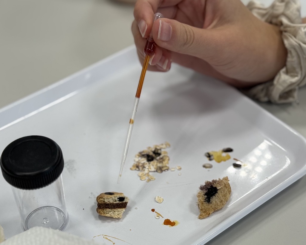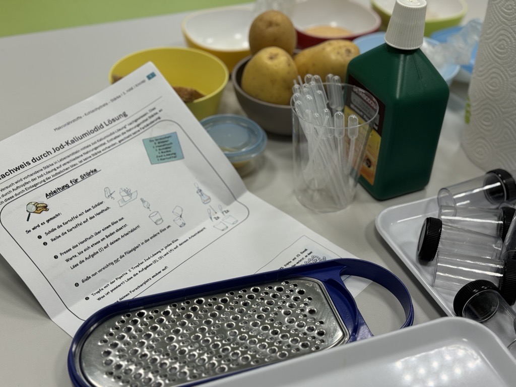 Heute im Nawi-Unterricht haben wir getestet, welche Lebensmittel Stärke enthalten.