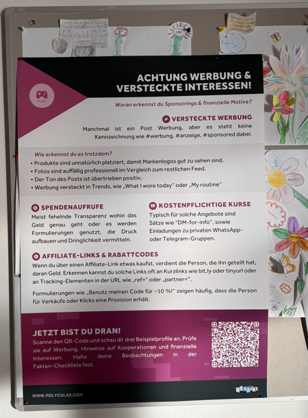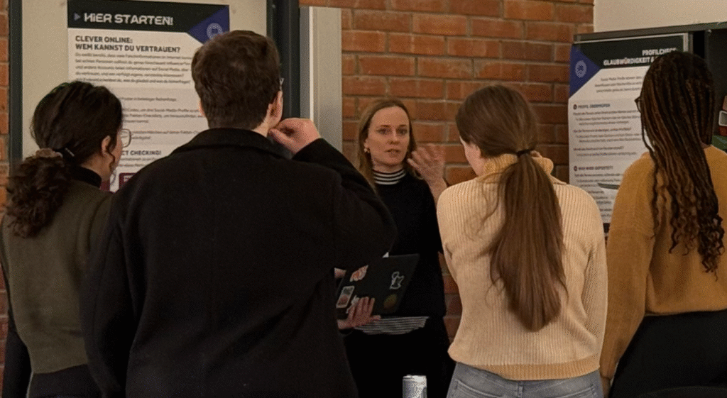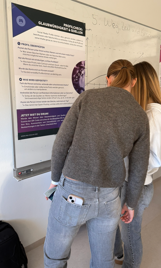 Auf Postern wurden die wichtigsten Tipps und Strategien bereitgestellt. Hier fanden die Schülerinnen und Schüler die zentralen Erkenntnisse zusammengefasst. Sie sollen uns erinnern: Prüfen statt blind vertrauen!