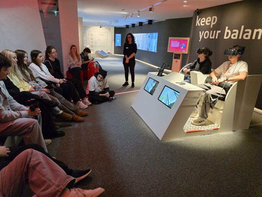 Der zweite Tag begann mit einem Besuch der Universität Innsbruck. Bei einer Führung durch die prunkvollen Räumlichkeiten erhielten wir einen guten Einblick in die traditionsreiche Atmosphäre sowie in das vielfältige Studienangebot der Universität. Anschließend besuchten wir das Audioversum, wo wir durch interaktive Stationen einen realistischen und eindrucksvollen Zugang zur Welt des Hörens erleben konnten.